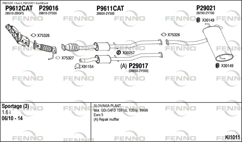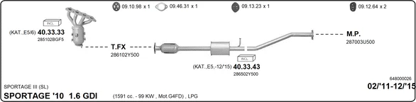 KIA SPORTAGE III (SL) 1.6 GDI - Výfukový systém - kompletní od 6/2010 do 12/2015, 1591 ccm, 99 kW, 135 hp, G4FD, SUV