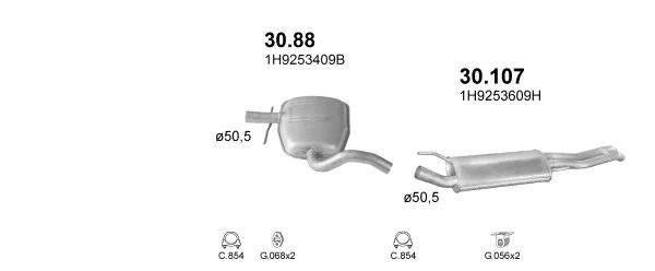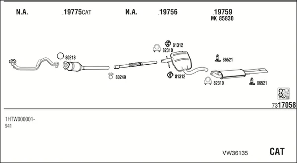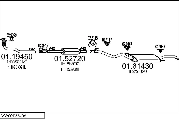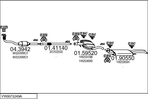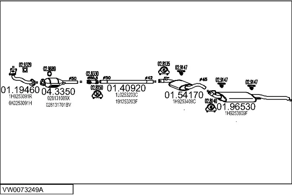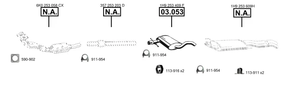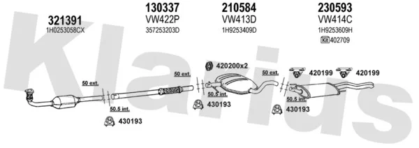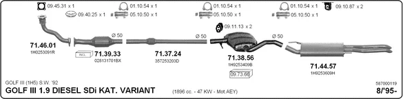VW GOLF III Variant (1H5) 1.9 SDI - Výfukový systém - kompletní od 7/1995 do 4/1999, 1896 ccm, 47 kW, 64 hp, AEY, kombi