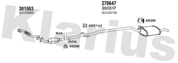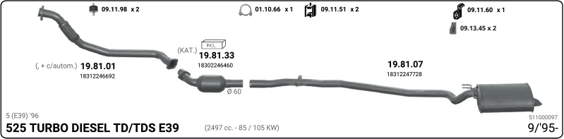 BMW 5 (E39) 525 td - Výfukový systém - kompletní od 1/1997 do 6/2003, 2497 ccm, 85 kW, 116 hp, M51 D25 (256T1), limuzína