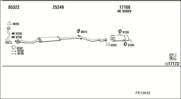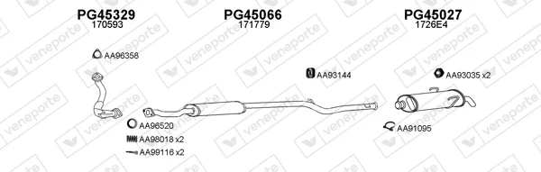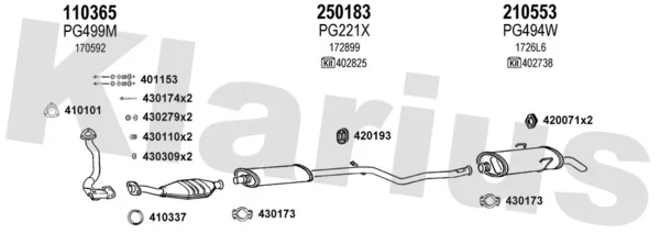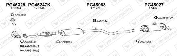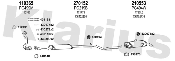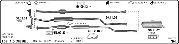 PEUGEOT 106 I (1A, 1C) 1.5 D - Výfukový systém - kompletní od 6/1994 do 4/1996, 1527 ccm, 43 kW, 58 hp, VJY (TUD5), VJZ (TUD5), Šikmá zadní část