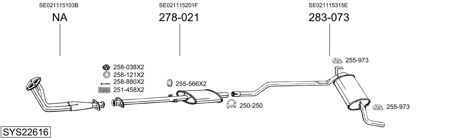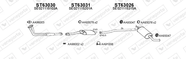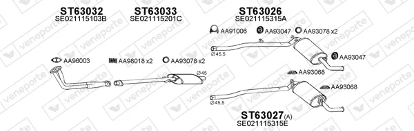 SEAT IBIZA I (21A) 1.2 - Výfukový systém - kompletní od 11/1984 do 12/1993, 1193 ccm, 46 kW, 63 hp, 021 A 1000, Šikmá zadní část