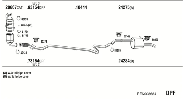 PEUGEOT 208 I (CA_, CC_) 1.4 HDi - Výfukový systém - kompletní od 3/2012 do 12/2019, 1398 ccm, 50 kW, 68 hp, 8HP (DV4C), 8HR (DV4C), Šikmá zadní část