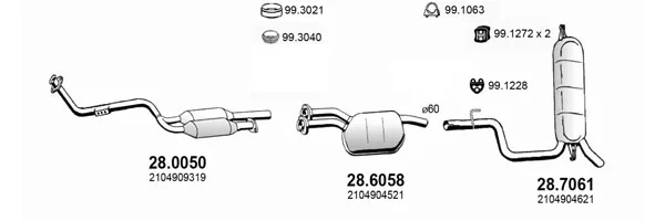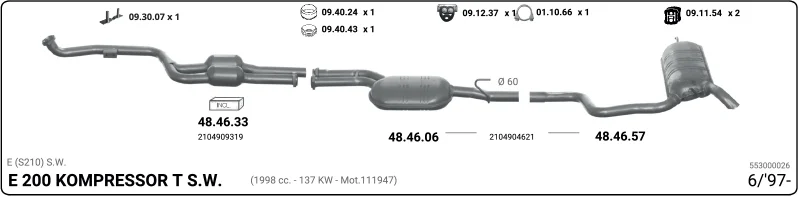 MERCEDES-BENZ E-CLASS T-Model (S210) E 200 T Kompressor (210.245) - Výfukový systém - kompletní od 6/1997 do 3/2003, 1998 ccm, 137 kW, 186 hp, M 111.947, kombi