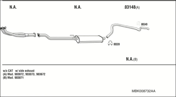MERCEDES-BENZ SPRINTER 3-t autobus (B903) 314 (903.071, 903.072, 903.073, 903.671, 903.672,... - Výfukový systém - kompletní od 2/1995 do 5/2006, 2295 ccm, 105 kW, 143 hp, M 111.979, M 111.984, autobus