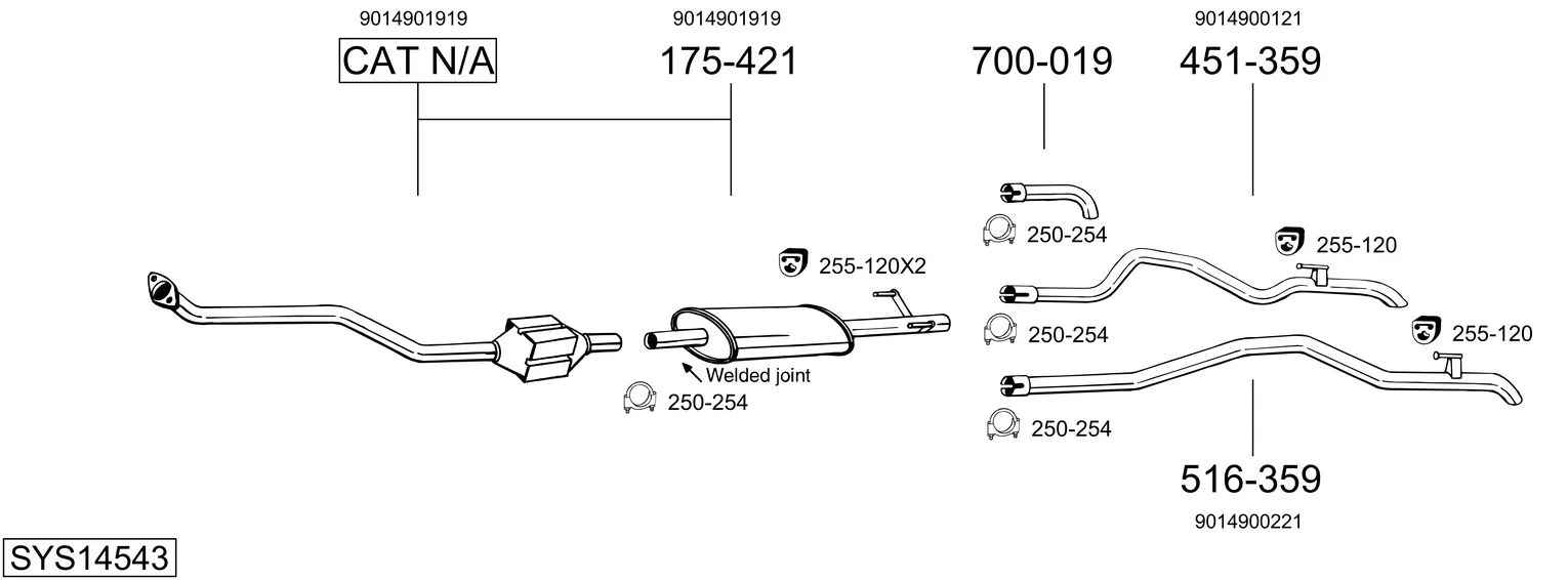 MERCEDES-BENZ SPRINTER 2-t Krabice (B901, B902) 208 D (901.361, 901.362, 902.361, 902.362) - Výfukový systém - kompletní od 10/1996 do 4/2000, 2299 ccm, 60 kW, 82 hp, OM 601.943, Krabice