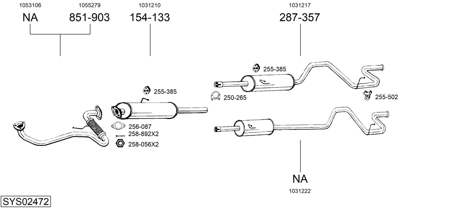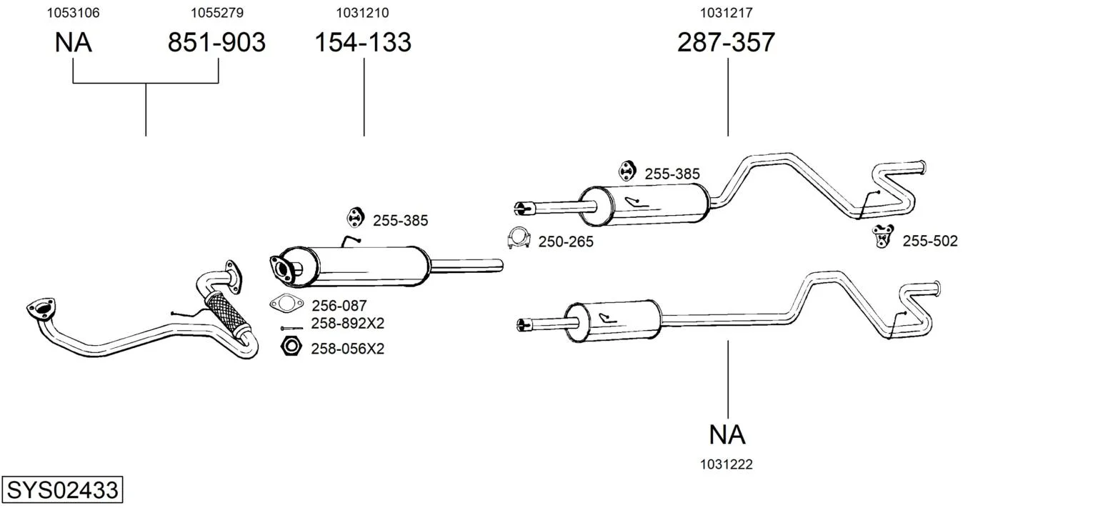 FORD TRANSIT valník/podvozek (E_ _) 2.5 TD (EME/L/S, ENE/L/S) - Výfukový systém - kompletní od 8/1994 do 3/2000, 2496 ccm, 63 kW, 85 hp, 4GA, 4GB, 4GC, 4GD, 4GE, 4GF, valník/podvozek