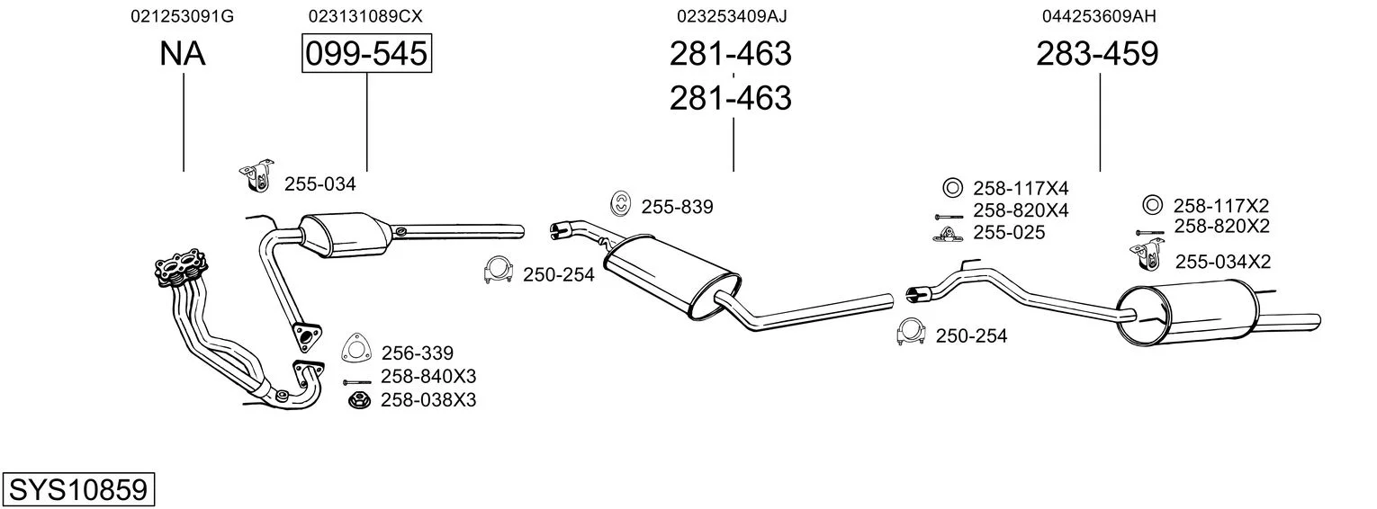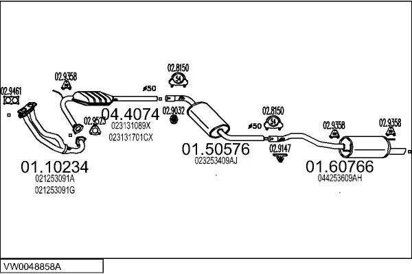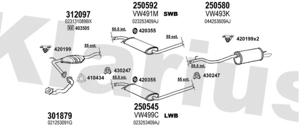 VW TRANSPORTER T4 autobus (70B, 70C, 7DB, 7DK, 70J, 70K, 7DC, 7 2.8 VR 6 - Výfukový systém - kompletní od 11/1995 do 4/2000, 2792 ccm, 103 kW, 140 hp, AES, autobus