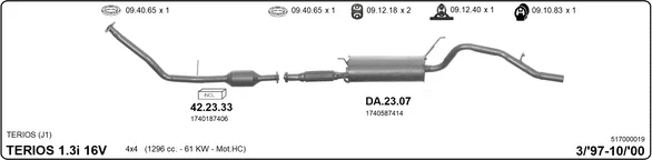 DAIHATSU TERIOS (J1_) 1.3 4WD (J100) - Výfukový systém - kompletní od 10/1997 do 10/2000, 1296 ccm, 61 kW, 83 hp, HC-EJ, uzavřený terénní vůz