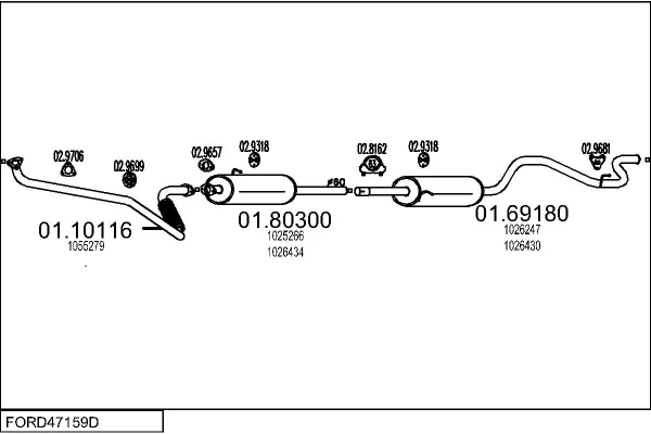 FORD TRANSIT valník/podvozek (E_ _) 2.5 TD (EME/L/S, ENE/L/S) - Výfukový systém - kompletní od 8/1994 do 3/2000, 2496 ccm, 74 kW, 101 hp, 4EB, 4EC, valník/podvozek