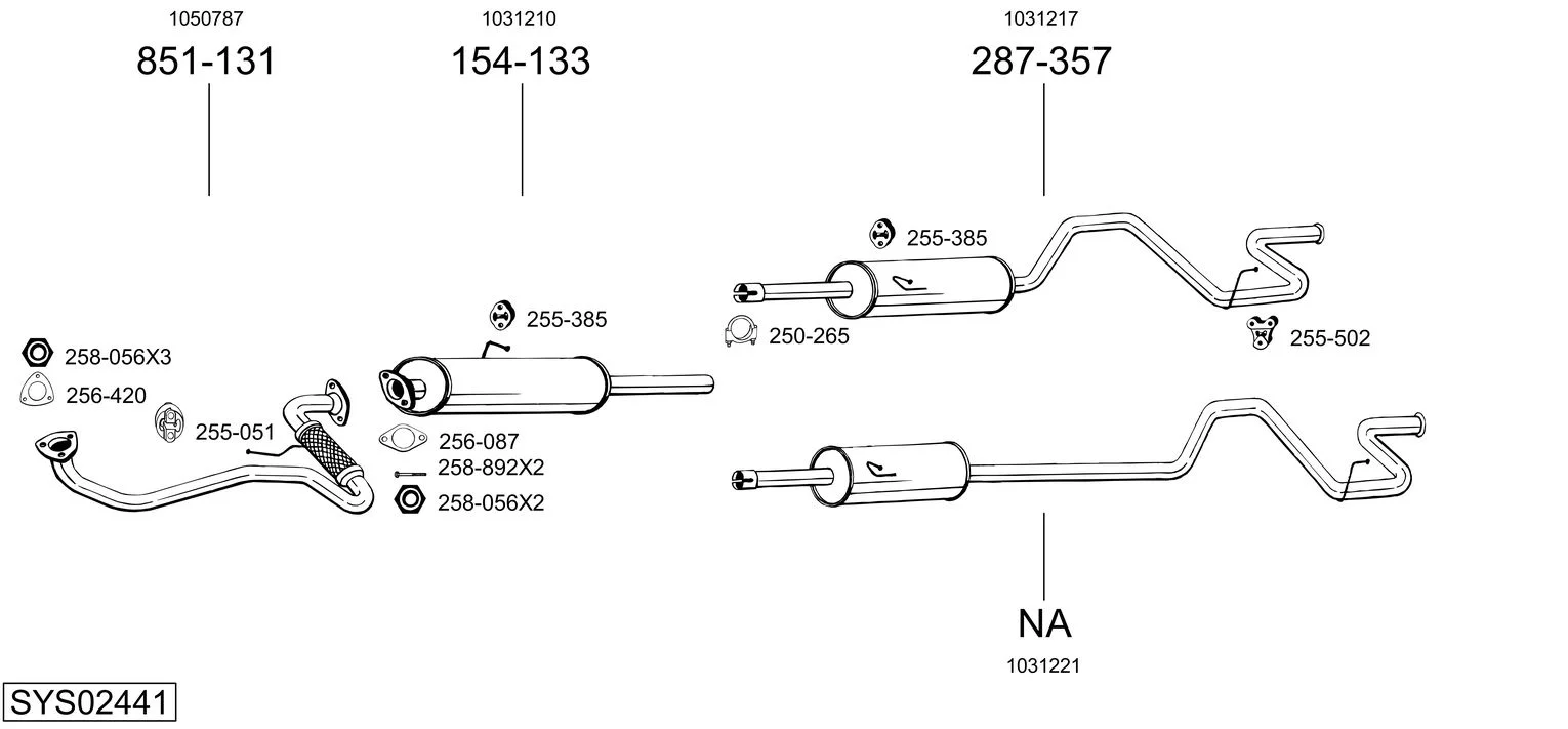FORD TRANSIT Krabice (E_ _) 2.5 DI (EAL, EAS) - Výfukový systém - kompletní od 6/1994 do 3/2000, 2496 ccm, 51 kW, 69 hp, 4FA, 4FB, 4FC, 4FD, Krabice