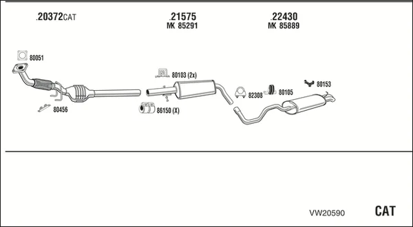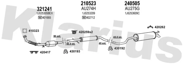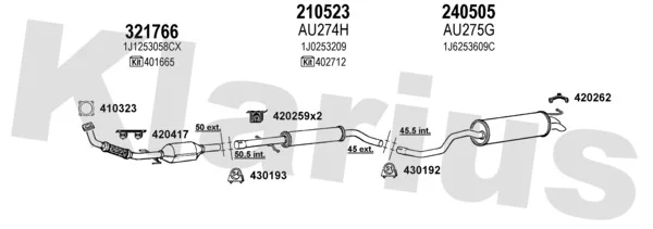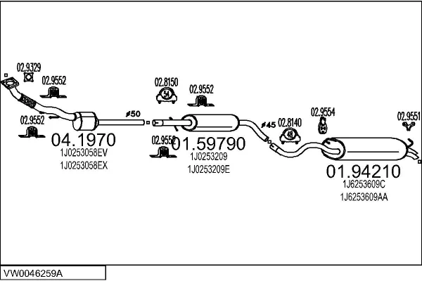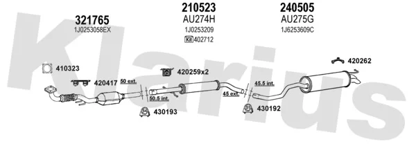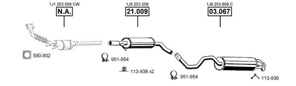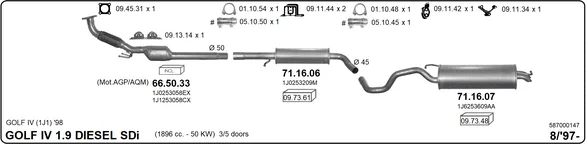 VW GOLF IV (1J1) 1.9 SDI - Výfukový systém - kompletní od 8/1997 do 6/2005, 1896 ccm, 50 kW, 68 hp, AGP, AQM, Šikmá zadní část