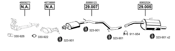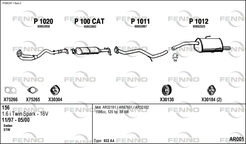 ALFA ROMEO 156 (932_) 1.6 16V T.SPARK (932.A4, 932.A4100) - Výfukový systém - kompletní od 9/1997 do 9/2005, 1598 ccm, 88 kW, 120 hp, AR 32102, AR 32103, AR 32104, AR 67601, limuzína