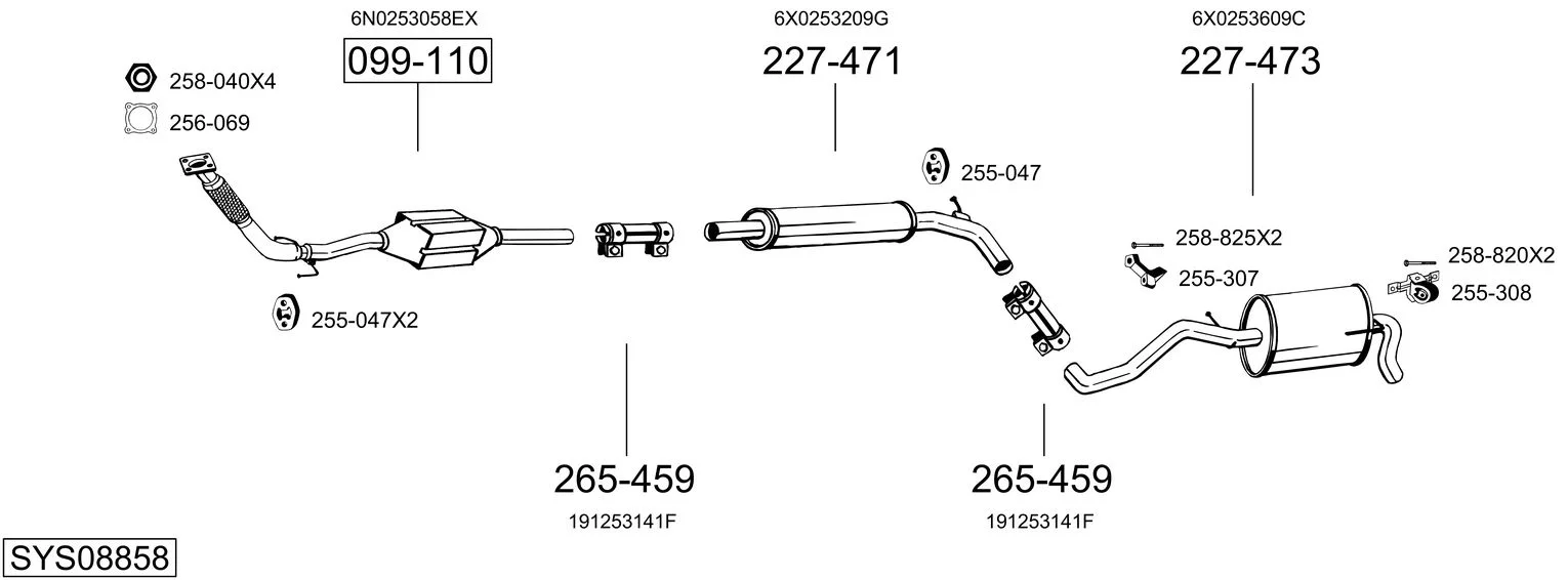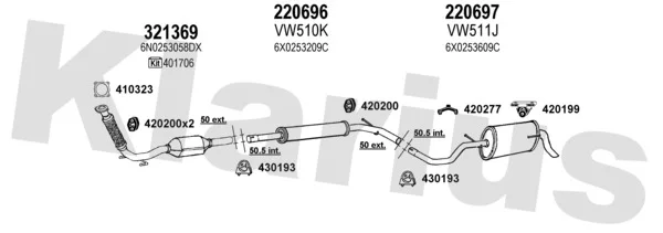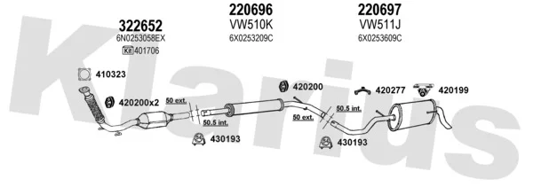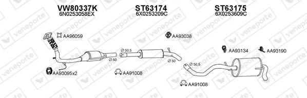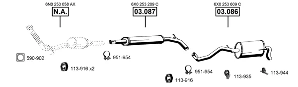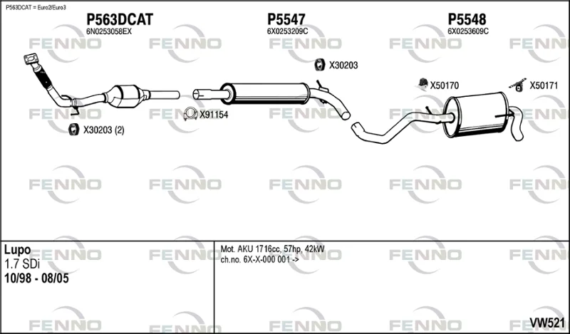 VW LUPO I (6X1, 6E1) 1.7 SDI - Výfukový systém - kompletní od 9/1998 do 7/2005, 1716 ccm, 44 kW, 60 hp, AKU, Šikmá zadní část