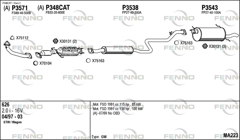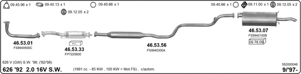 MAZDA 626 V Station Wagon (GW) 2.0 (GWEW) - Výfukový systém - kompletní od 2/1998 do 10/2002, 1991 ccm, 85 kW, 116 hp, FS, kombi