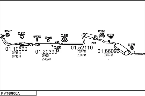FIAT DUNA (146_) 60 1.1 - Výfukový systém - kompletní od 1/1987 do 12/1991, 1116 ccm, 43 kW, 58 hp, 146 A6.000, limuzína