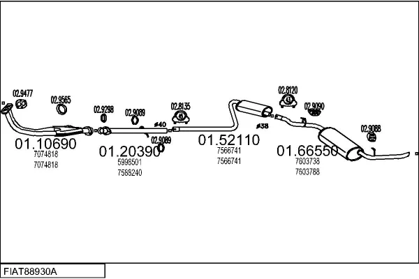 FIAT DUNA Weekend (146_) 60 1.1 - Výfukový systém - kompletní od 1/1987 do 12/1991, 1116 ccm, 43 kW, 58 hp, 146 A6.000, kombi