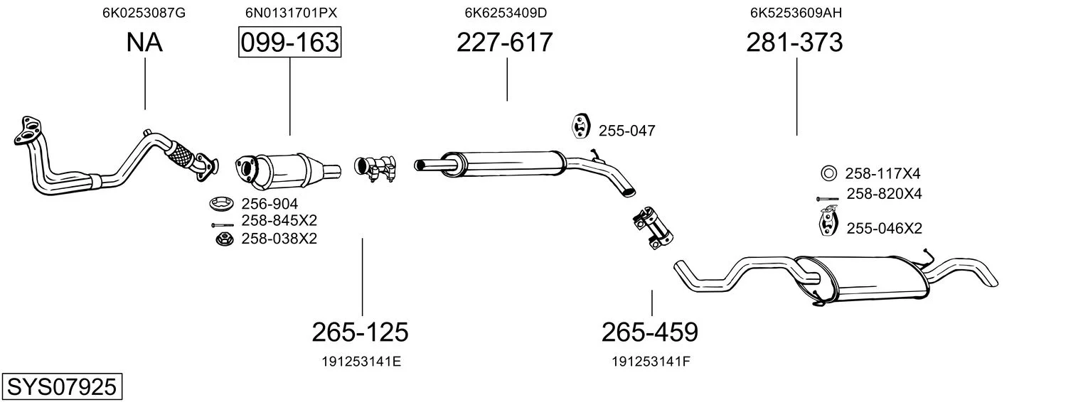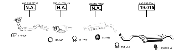VW POLO Variant (6V5) 1.6 - Výfukový systém - kompletní od 5/1997 do 9/2001, 1598 ccm, 55 kW, 75 hp, AEE, ALM, kombi