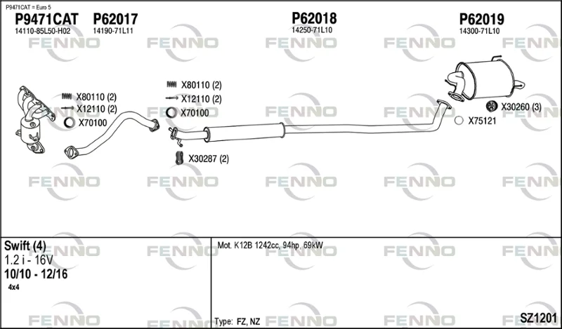 SUZUKI SWIFT IV (FZ, NZ) 1.2 4x4 (AZG412, ZD72S) - Výfukový systém - kompletní