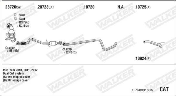 OPEL ASTRA J (P10) 1.4 Turbo (68) - Výfukový systém - kompletní od 10/2010 do 10/2015, 1364 ccm, 88 kW, 120 hp, A 14 NEL, B 14 NEL, Šikmá zadní část