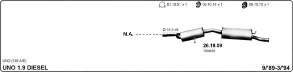 FIAT UNO (146_, 158_) 1.9 D - Výfukový systém - kompletní od 9/1989 do 3/1994, 1929 ccm, 44 kW, 60 hp, 149 B5.046, Šikmá zadní část