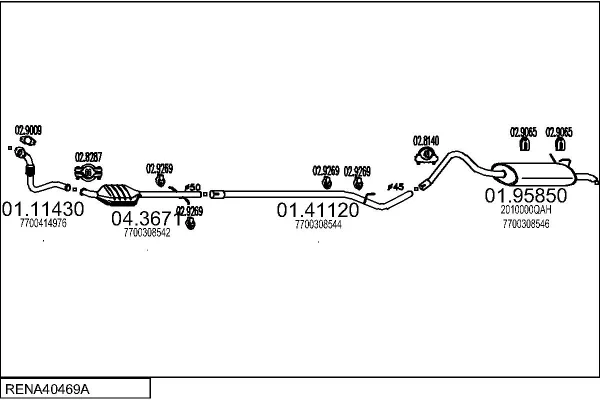 RENAULT KANGOO Express (FC0/1_) D 55 1.9 (FC0D) - Výfukový systém - kompletní od 8/1997, 1870 ccm, 40 kW, 54 hp, F8Q 662, Skříňová/velkoprostorová limuzína