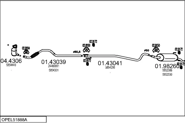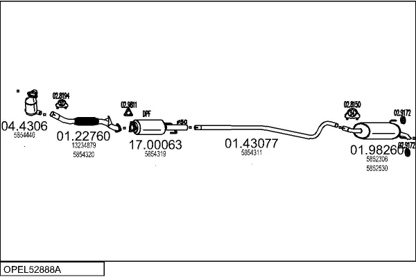 OPEL ASTRA H karoserie/kombi (L70) 1.3 CDTI (L70) - Výfukový systém - kompletní od 8/2005 do 10/2010, 1248 ccm, 66 kW, 90 hp, Z 13 DTH, karoserie/kombi