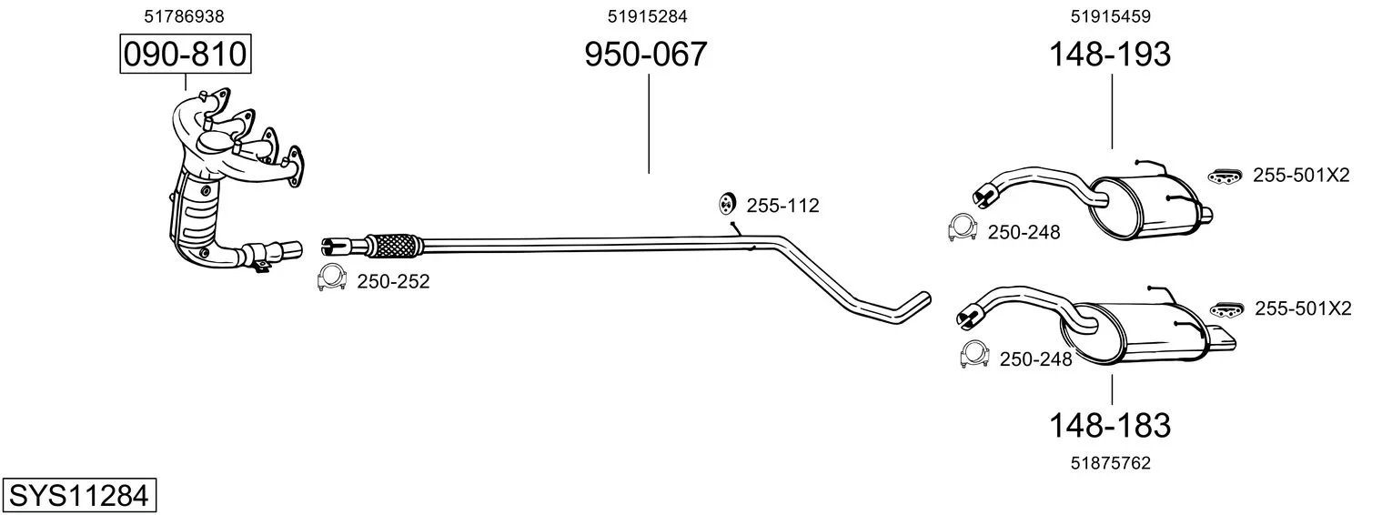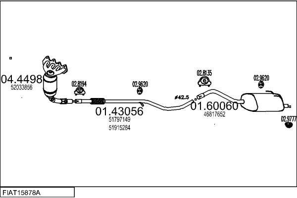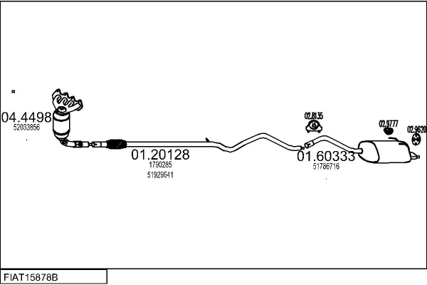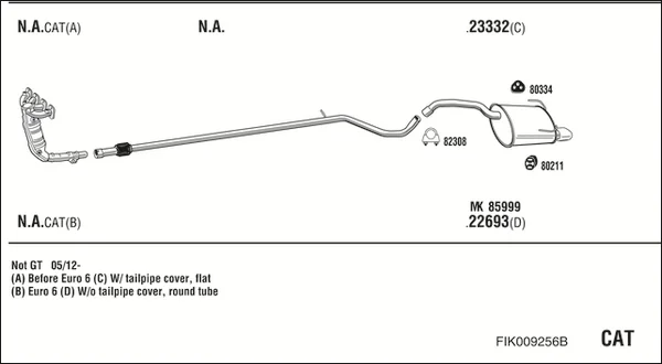 FIAT 500 (312_) 1.2 LPG (312AXA1A) - Výfukový systém - kompletní od 12/2010, 1242 ccm, 51 kW, 69 hp, 169 A4.000, Šikmá zadní část