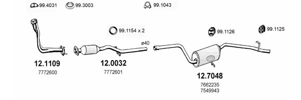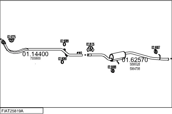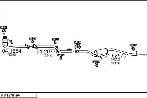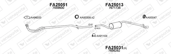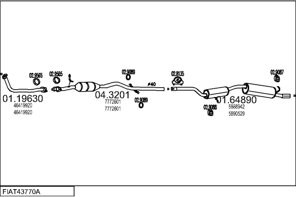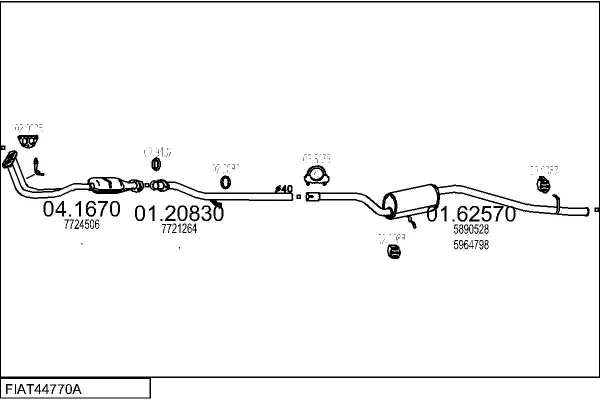 FIAT UNO (146_, 158_) 45 i.e. 1.0 (146E, 146A) - Výfukový systém - kompletní od 10/1984 do 10/1995, 999 ccm, 33 kW, 45 hp, 156 A2.000, 156 A2.246, Šikmá zadní část