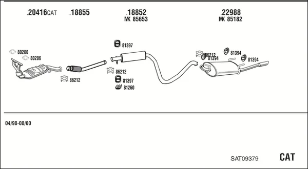 SAAB 9-3 (YS3D) 2.0 i - Výfukový systém - kompletní od 2/1998 do 9/2002, 1985 ccm, 96 kW, 131 hp, B204I, Šikmá zadní část