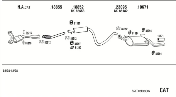 SAAB 9-3 (YS3D) 2.0 Turbo - Výfukový systém - kompletní od 2/1998 do 9/2002, 1985 ccm, 136 kW, 185 hp, B204L, B205E, B205L, Šikmá zadní část