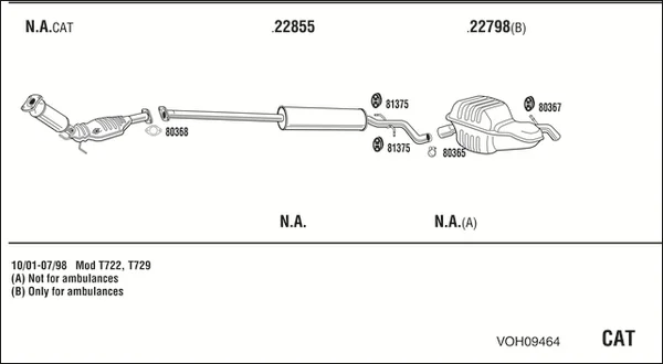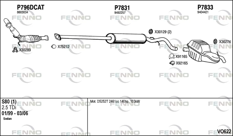 VOLVO S80 I (184) 2.5 TDI - Výfukový systém - kompletní od 1/1999 do 7/2006, 2460 ccm, 103 kW, 140 hp, D 5252 T, limuzína