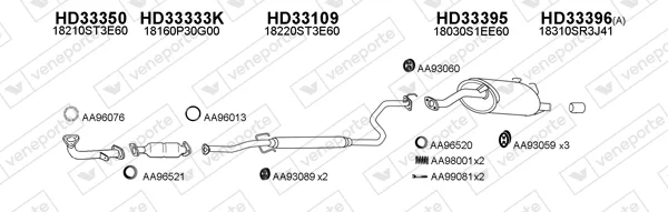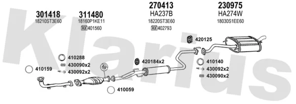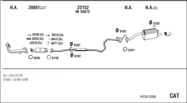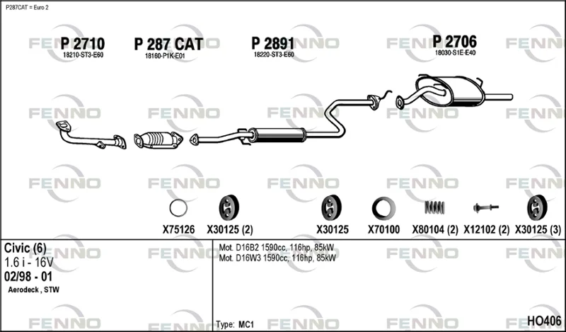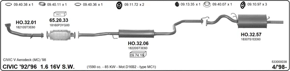 HONDA CIVIC VI Aerodeck (MB, MC) 1.6 16V (MC1) - Výfukový systém - kompletní od 4/1998 do 2/2001, 1590 ccm, 85 kW, 116 hp, D16B2, D16W3, kombi
