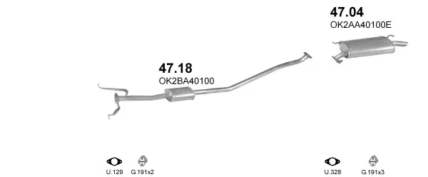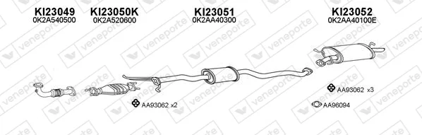 KIA SHUMA I (FB) 1.8 i 16V - Výfukový systém - kompletní od 10/1997 do 3/2001, 1793 ccm, 81 kW, 110 hp, T8, TED, Šikmá zadní část