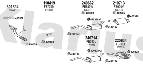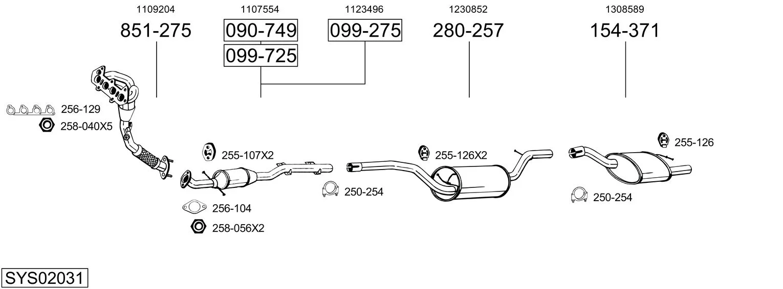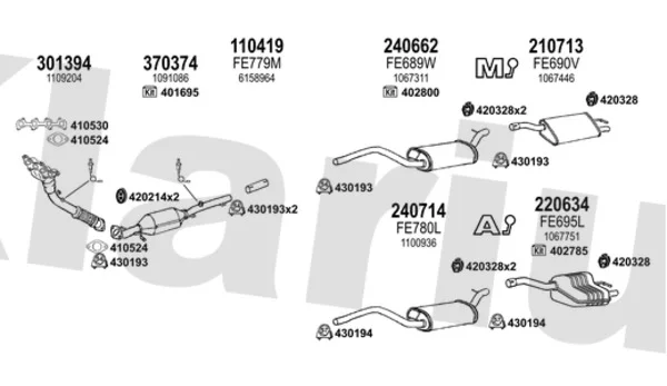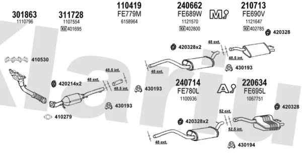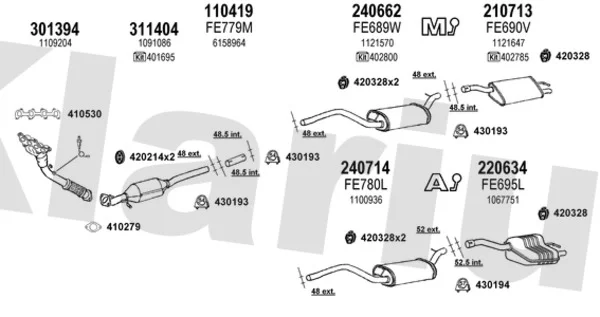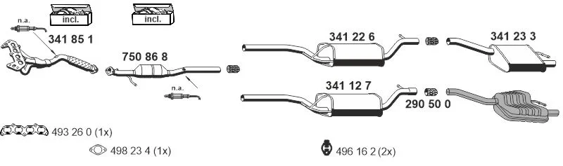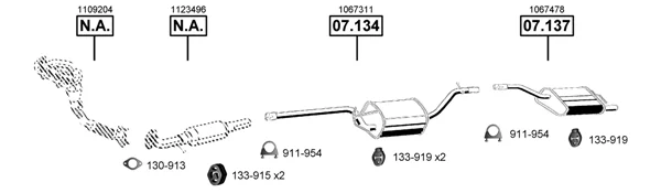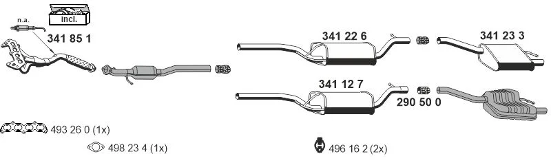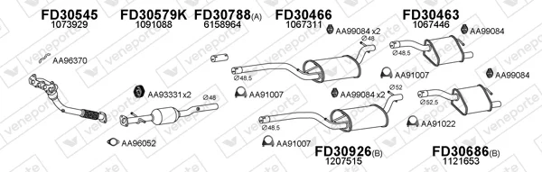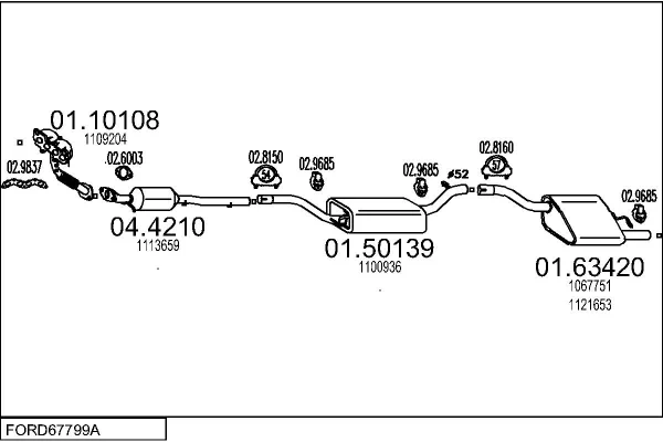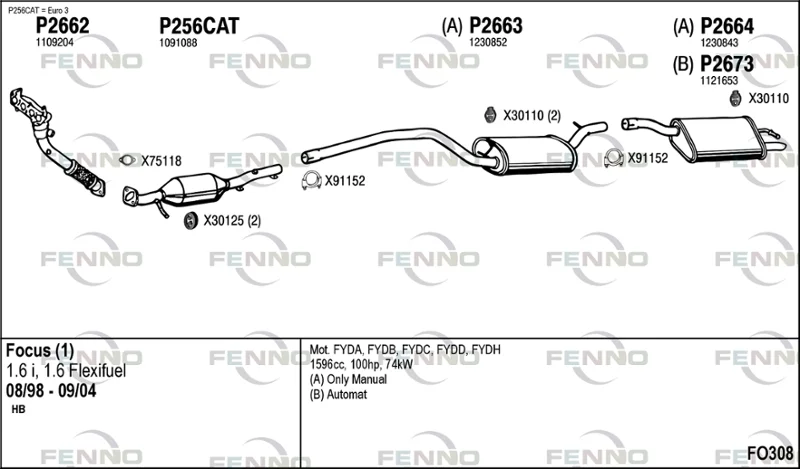 FORD FOCUS I (DAW, DBW) 1.6 16V - Výfukový systém - kompletní od 10/1998 do 11/2004, 1596 ccm, 74 kW, 100 hp, FYDA, FYDB, FYDC, FYDD, FYDH, Šikmá zadní část