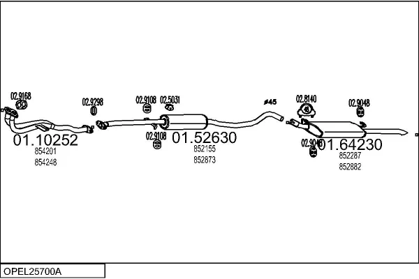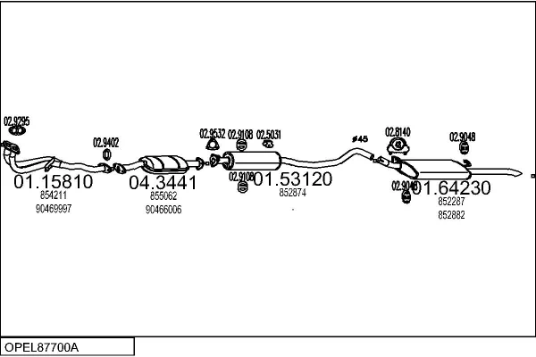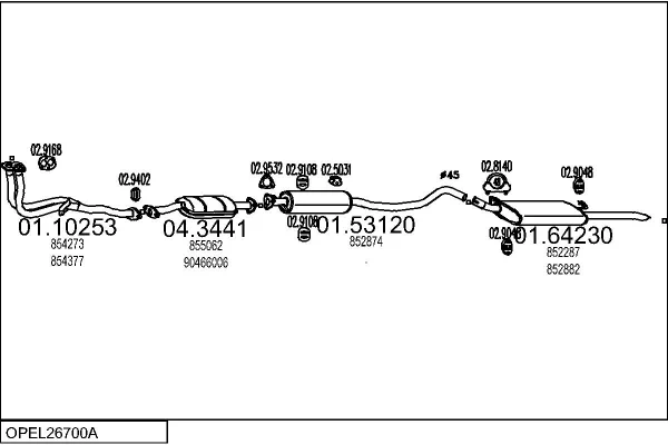 OPEL VECTRA A (J89) 1.6 i (F19, M19) - Výfukový systém - kompletní od 9/1988 do 11/1995, 1598 ccm, 55 kW, 75 hp, C 16 NZ, C 16 NZ2, E 16 NZ, limuzína