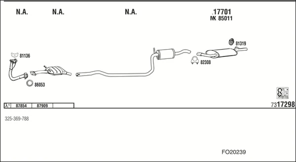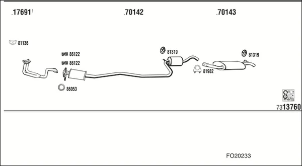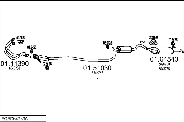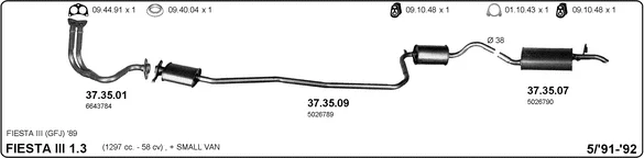 FORD FIESTA III (GFJ) 1.3 - Výfukový systém - kompletní od 3/1989 do 12/1992, 1299 ccm, 44 kW, 60 hp, JBC, Šikmá zadní část