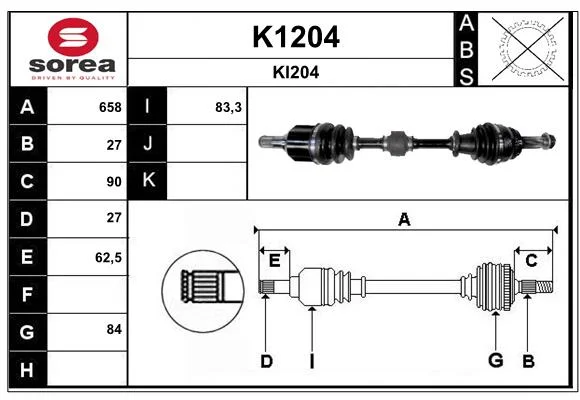 KIA CERATO I limuzína (LD) 1.5 CRDi - hnací hřídel od 7/2005 do 12/2009, 1493 ccm, 66 kW, 90 hp, D4FA, limuzína
