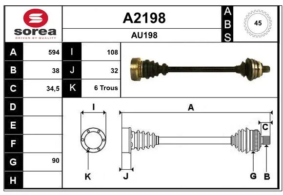 AUDI 80 B4 limuzína (8C2) S2 quattro - hnací hřídel od 2/1993 do 12/1994, 2226 ccm, 169 kW, 230 hp, ABY, limuzína