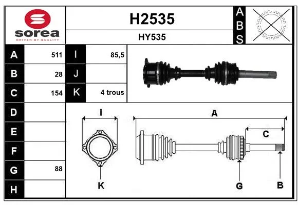 HYUNDAI GALLOPER II (JK-01) 2.5 TD intercooler - hnací hřídel od 8/1998 do 12/2003, 2476 ccm, 73 kW, 99 hp, D4BH, uzavřený terénní vůz