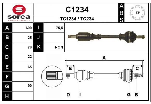 CITROËN BX (XB-_) 14 E - hnací hřídel od 9/1985 do 2/1993, 1360 ccm, 49 kW, 67 hp, 150F, Šikmá zadní část
