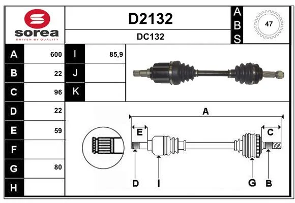 DAEWOO KALOS limuzína (KLAS) 1.4 - hnací hřídel od 5/2003 do 12/2004, 1399 ccm, 69 kW, 94 hp, F14D3, limuzína
