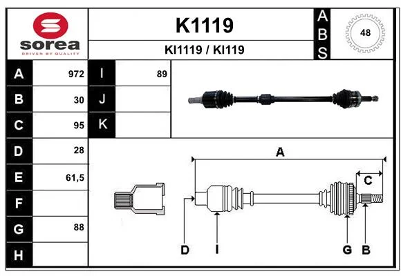 KIA SPORTAGE II (JE_, KM_) 2.0 CRDi - hnací hřídel od 1/2006 do 5/2010, 1991 ccm, 100 kW, 136 hp, D4EA, SUV