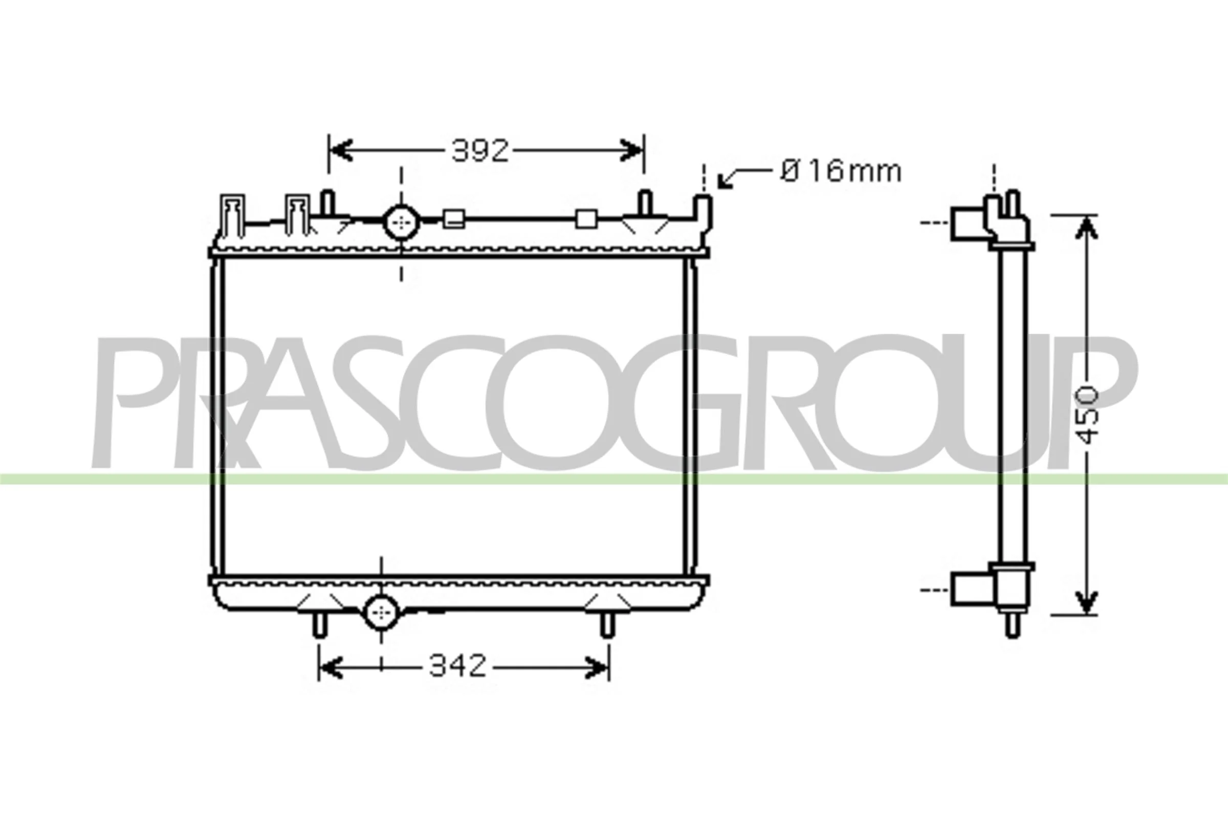 PEUGEOT 206 Šikmá zadní část (2A/C) 1.6 HDi 110 - Chladič od 5/2004 do 2/2007, 1560 ccm, 80 kW, 109 hp, 9HY (DV6TED4), 9HZ (DV6TED4), Šikmá zadní část