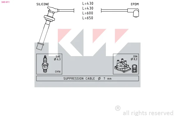 Kabel zapalovací svíčky | svislé primární připojení (obdélníkové) |