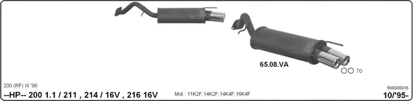 ROVER 200 II Šikmá zadní část (RF) 211 - Sportovní tlumič hluku od 1/1998 do 3/2000, 1120 ccm, 44 kW, 60 hp, 11 K2D, Šikmá zadní část