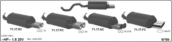 SEAT LEON (1M1) 1.8 20V - Sportovní tlumič hluku od 11/1999 do 6/2006, 1781 ccm, 92 kW, 125 hp, AGN, APG, Šikmá zadní část