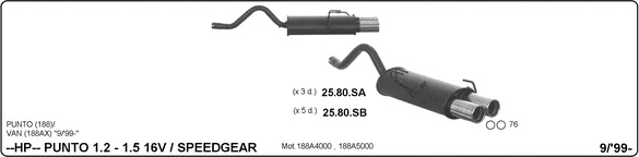 FIAT PUNTO Schránky/šikmá záď (188_) 1.2 60 - Sportovní tlumič hluku od 2/2000 do 10/2009, 1242 ccm, 44 kW, 60 hp, 188 A4.000, Schránky/šikmá záď