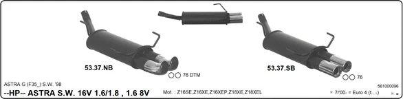 OPEL ASTRA G kombi (T98) 1.6 (F35) - Sportovní tlumič hluku od 12/2002 do 5/2004, 1598 ccm, 76 kW, 103 hp, Z 16 XEP, kombi