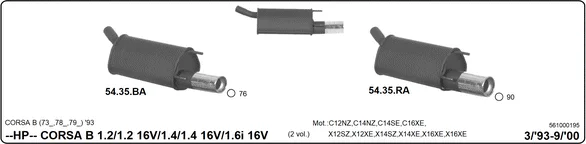 OPEL CORSA B (S93) 1.2 i (F08, F68, M68) - Sportovní tlumič hluku od 3/1993 do 9/2000, 1195 ccm, 33 kW, 45 hp, C 12 NZ, X 12 SZ, Šikmá zadní část