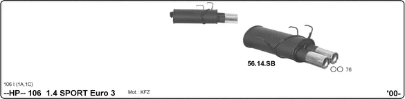 PEUGEOT 106 I (1A, 1C) 1.4 Le Mans - Sportovní tlumič hluku od 9/1991 do 11/1994, 1361 ccm, 69 kW, 94 hp, KFZ (TU3FJ2/Z), Šikmá zadní část